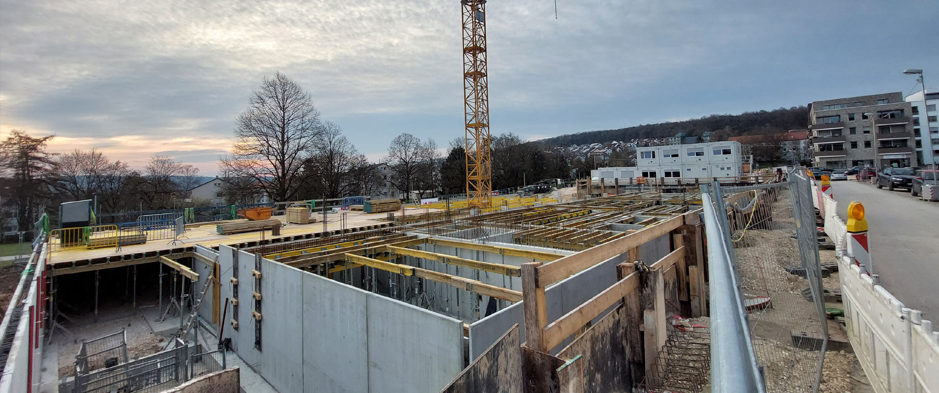 Stand März 2026: Derzeit wird die Tiefgarage und das Untergeschoss hergestellt.